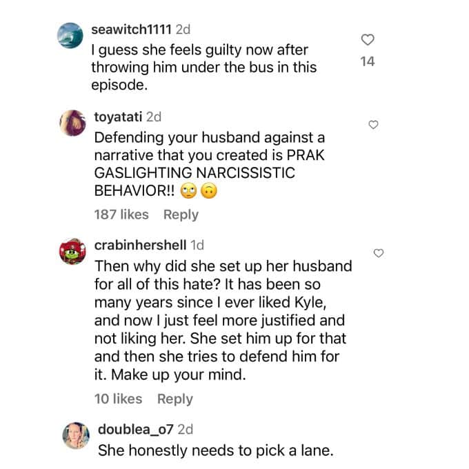 RHOBH fans aired their frustrations at Kyle on social media after she blasted the critics for talking negatively about her husband.